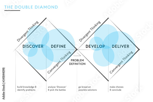 The two diamonds represent a process of exploring an issue more widely or deeply (divergent thinking) and then taking focused action (convergent thinking). It suggests that the desi. Check spelling or type a new query. We did not find results for: Maybe you would like to learn more about one of these?
